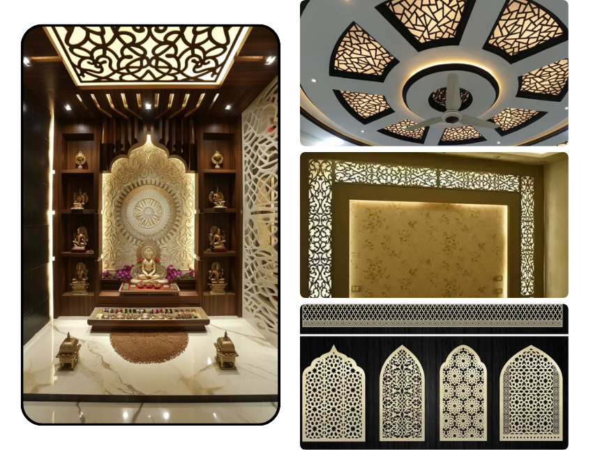 Atinterior specializes in transforming spaces with innovative design solutions. From WPC CNC jali cutting to mandir design, HDHMR MDF 3D carving, and uPVC window services, we bring creativity and precision to every project, ensuring your interiors reflect your unique style
